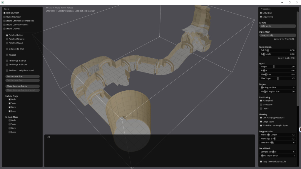 WASD: 像第一人称游戏一样移动相机。 - 空格键: 在选定区域生成导航网格。